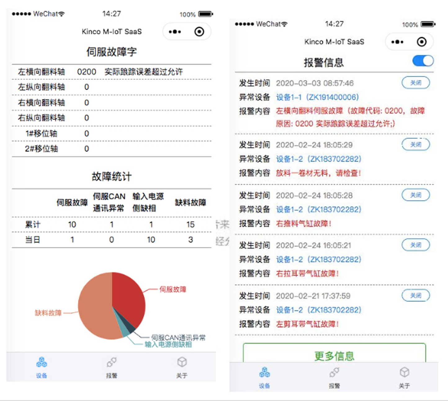 步科口罩機(jī)Plus方案,在CANopen總線(xiàn)伺服驅(qū)動(dòng)產(chǎn)品基礎(chǔ)上,迅速升級(jí)M-IoT物聯(lián)網(wǎng)遠(yuǎn)程運(yùn)維服務(wù),快速完善了設(shè)備報(bào)警和維護(hù)信息,增加了遠(yuǎn)程診斷服務(wù)功能,進(jìn)一步打通了現(xiàn)場(chǎng)、設(shè)備商和部件商的溝通渠道,幫助現(xiàn)場(chǎng)人員快速排查故障。