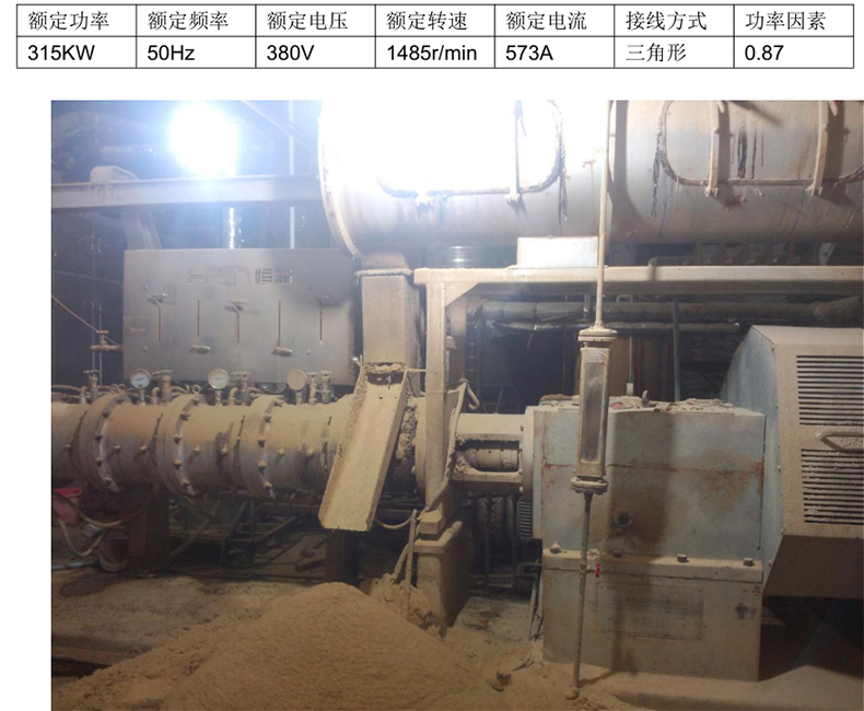 2、 、 改造設(shè)備概述: :客戶要求改造的設(shè)備為膨化機(jī),達(dá)315KW 功率(實(shí)際銘牌數(shù)據(jù)如下表1)。膨化機(jī)工作原理為:利用膨化機(jī)的不等距非標(biāo)準(zhǔn)螺旋系統(tǒng)的擠壓推進(jìn),物料中的氣體被排出,并迅速被物料填充,物料受剪切力作用而產(chǎn)生回流,使機(jī)膛內(nèi)的壓力增大,隨著摞旋與機(jī)膛間的磨擦使物料充分混合、擠壓、加熱、膠合、糊化而產(chǎn)生組織變化,原有的結(jié)構(gòu)受到破壞,同時(shí)機(jī)械能通過物料在膛內(nèi)的磨擦作用而轉(zhuǎn)化為熱能,使物料成為具有流動(dòng)性質(zhì)的膠凝狀態(tài),物料被擠壓到出口時(shí)壓力由高壓瞬間變?yōu)槌海筛邷厮查g變?yōu)槌?,造成水分迅速地從組織結(jié)構(gòu)中蒸發(fā)出來,使其內(nèi)部形成無數(shù)微孔結(jié)構(gòu),再通過切割裝置,切割冷卻即膨化成形。