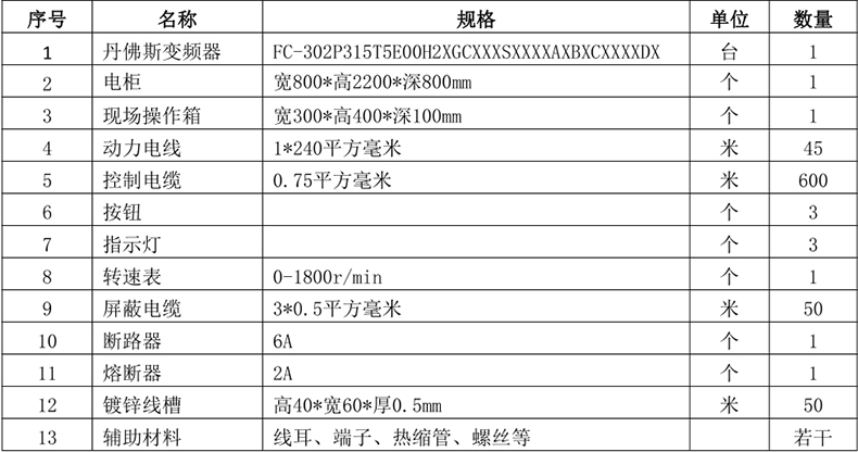 (1) 、電機(jī)改用丹佛斯 FC302 系列變頻器控制(電機(jī)采用三角形接法),實(shí)現(xiàn)軟啟停功能,啟動(dòng)電流在電機(jī)額定電流以內(nèi),節(jié)約電能;