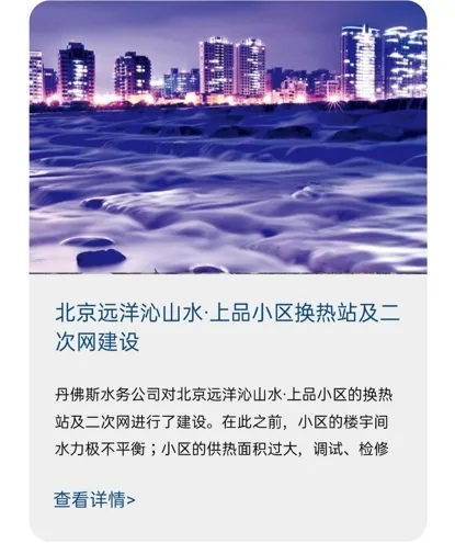 作為全球領先的能效解決方案供應商,丹佛斯在水務領域有著行業(yè)領先的技術和應用, 在世界各地包括中丹兩國都有眾多成功案例。