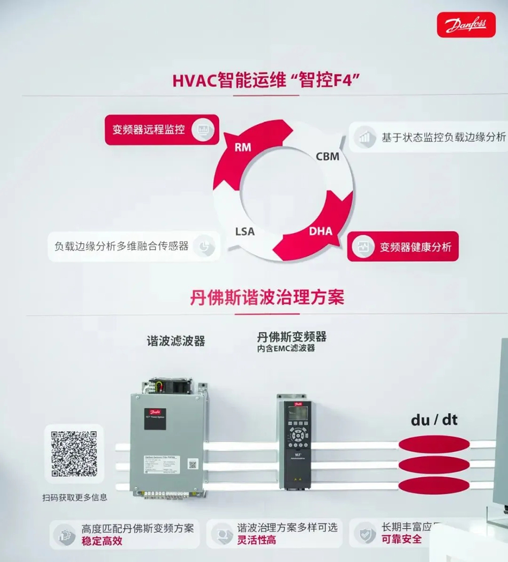 丹佛斯擁有多種諧波抑制的解決方案,有效降低諧波含量,提高了系統(tǒng)效率,實(shí)現(xiàn)長期穩(wěn)定運(yùn)行。丹佛斯經(jīng)認(rèn)證的控制諧波的解決方案包含有源濾波器、高級(jí)無源濾波器、低諧波變頻器、多脈沖變頻器及有源前端變頻器。此外,丹佛斯以“丹管家”智能運(yùn)維解決方案為核心,為綠色廠務(wù)提供從監(jiān)測到優(yōu)化的全鏈路支持,包含變頻器遠(yuǎn)程監(jiān)控(RM)、基于狀態(tài)監(jiān)控負(fù)載邊緣分析(CBM)、變頻器健康分析(DHA)及負(fù)載邊緣分析多維融合傳感器(LSA),可有效降低老舊廠房綠色改造升級(jí)的成本,經(jīng)濟(jì)價(jià)值凸顯。