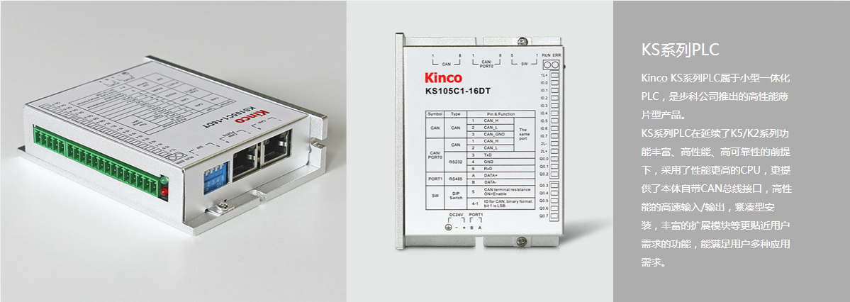 KS105C1和KS105C2本體自帶CAN接口,支持CANopen主站、從站和CAN自由協(xié)議,配合便利運(yùn)動(dòng)控制指令庫,為多軸應(yīng)用場(chǎng)合提供更高性價(jià)比的選擇