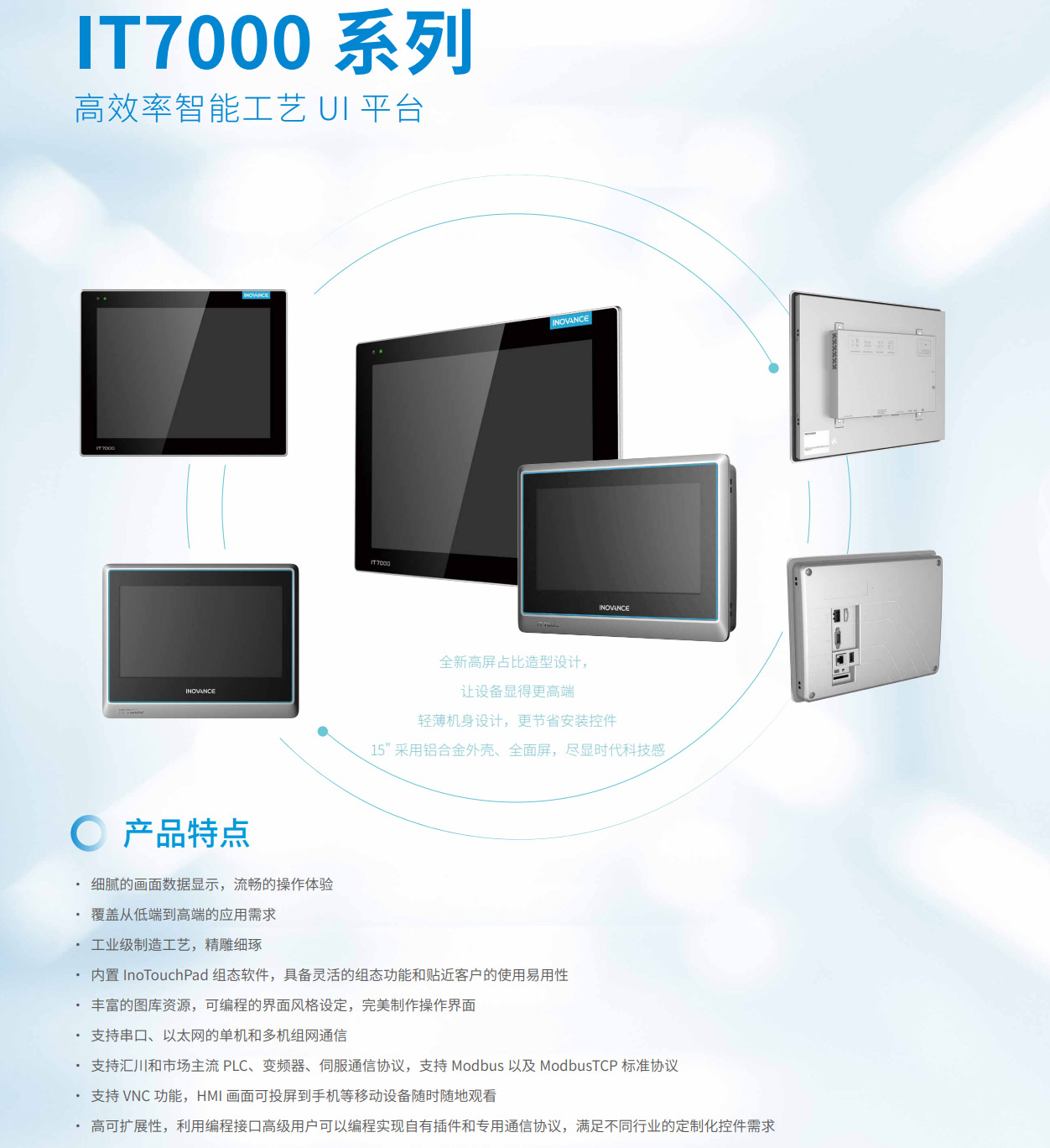 IT7000是匯川基于工控HMI發(fā)展趨勢研發(fā)的全新一代觸摸屏,在顯示效果上有顯著提升,與傳統(tǒng)HMI相比,IT7000通信更加豐富,功能更加全面,具有更強(qiáng)大的數(shù)據(jù)處理能力和更快的響應(yīng)速度。