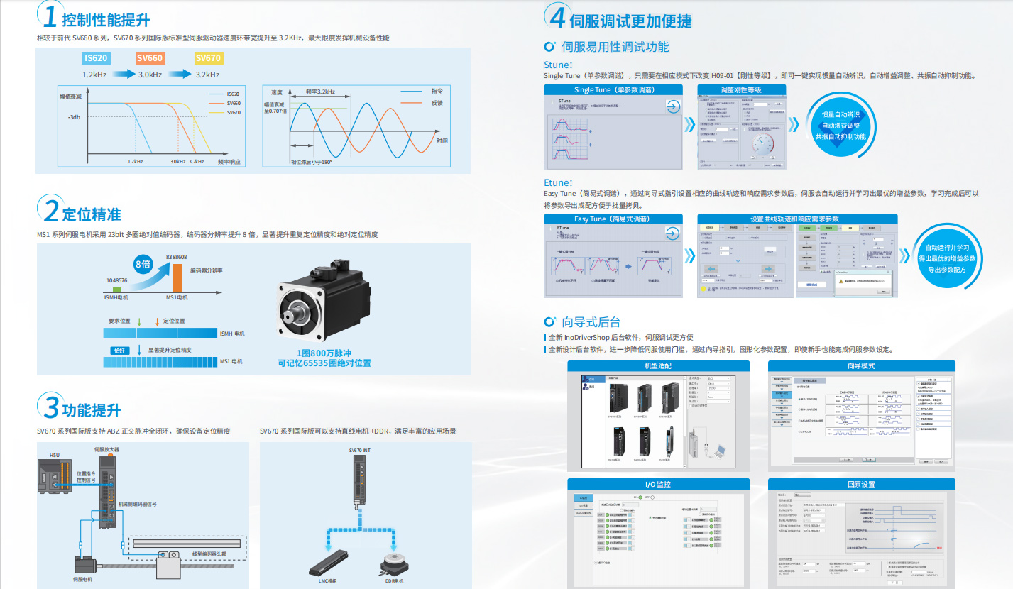 SV670 系列國(guó)際版標(biāo)準(zhǔn)型伺服驅(qū)動(dòng)器適用于電子制造、鋰電、機(jī)械手、包裝、 機(jī)床等行業(yè)的自動(dòng)化設(shè)備,以高性能方案實(shí)現(xiàn)快速精確的位置控制、速度控制和轉(zhuǎn)矩控制。