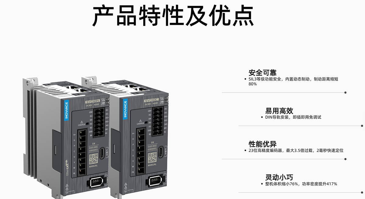 SVD60系列伺服驅(qū)動器是匯川技術(shù)研制的一款低壓直流伺服平臺,產(chǎn)品功率范圍為0.2kW~0.75kW,支持CANopen和EtherCAT控制方式,配合上位機可實現(xiàn)多臺伺服驅(qū)動器聯(lián)網(wǎng)運行。 該系列伺服適用于物流、醫(yī)藥、電子制造、鋰電、汽車、機床等行業(yè)的自動化設(shè)備,以小體積,高性能,更安全通用方案實現(xiàn)快速精確的位置控制、速度控制和轉(zhuǎn)矩控制。