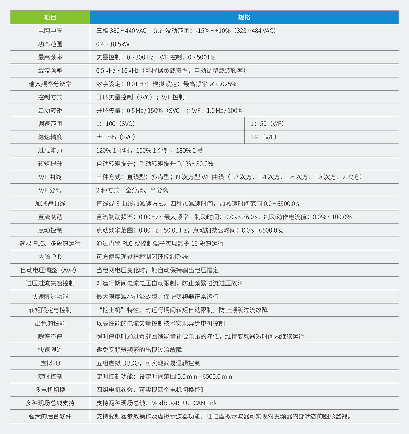 MD310系列變頻器是一款通用緊縮型多功能變頻器,采用開環(huán)矢量和V/F 控制方式,以高性能的電流矢量控制技術(shù)可實(shí)現(xiàn)異步電機(jī)控制。MD310 標(biāo)配RS485 通訊接口,支持Modbus RTU 通訊,可擴(kuò)展I/O 擴(kuò)展卡、CAN 通信擴(kuò)展卡。內(nèi)置PID 可方便實(shí)現(xiàn)閉環(huán)過程控制系統(tǒng),最多可實(shí)現(xiàn)16 段速運(yùn)行。